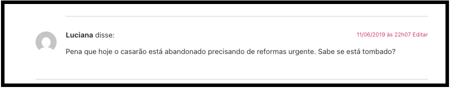“…E não demora muito para eu descobrir. Porque a casa abandonada é famosa. Descubro na primeira busca no Google que o casarão é tradicional.