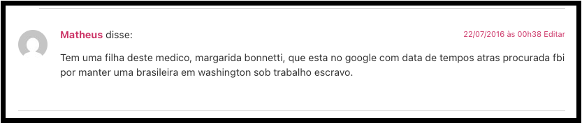 Deixando claro, embora não citado no meu artigo, eu já conhecia toda a história da Margarida Bonetti nos Estados Unidos. Mas optei por não inserir no artigo por dois motivos: