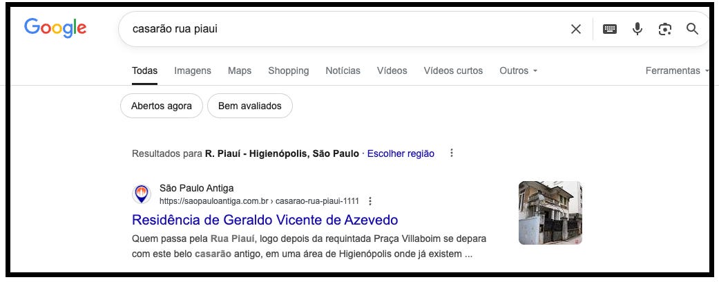 A busca no Google hoje em dia, evidentemente, gera inúmeros resultados devido ao enorme buzz gerado pela série. Contudo naquela época basicamente só existia um único lugar que descrevia isso que ele menciona: o site São Paulo Antiga. O “print” abaixo é atual.