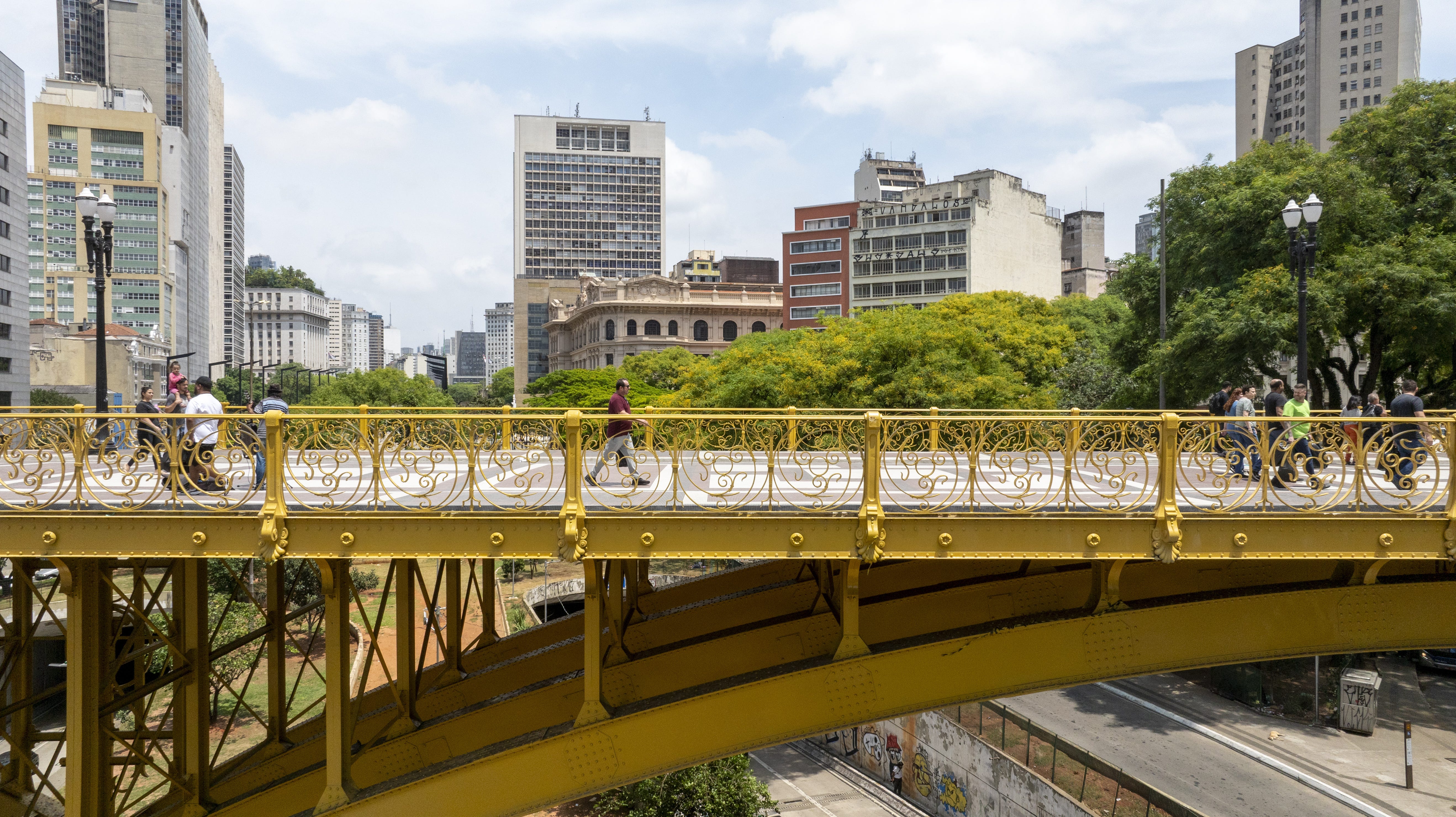 Quem caminha pelas ruas da região central de São Paulo com frequência deve ter notado que, desde o início do ano, o viaduto Santa Ifigênia estava apenas parcialmente aberto e em obras. Anunciado com grande galhardia pela gestão municipal, o restauro do viaduto, inaugurado em 1913, teria um custo de R$ 6.5 milhões com previsão de entrega para agosto de 2024. Seria a primeira grande reforma desde a segunda metade da década de 1970, quando ela teve o tráfego de veículos proibido e seu piso de pastilhas instalado.